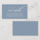 Celebrate the beginning of your journey together with our elegantly dusty blue crafted "honeymoon wish" wedding invitation enclosed card. Featuring a sophisticated blend of modern script and romantic allure, each card is meticulously designed to convey the essence of your special day. Perfectly suited for couples seeking a unique way to share their honeymoon dreams, this card invites your loved ones to contribute towards unforgettable experiences. Whether nestled in a luxurious envelope or presented alongside your wedding invitations, our card adds a touch of enchantment to your celebration, promising cherished memories that last a lifetime. Designed by TeeshaDerrick.