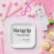Introducing the Square Paper Plate from the Elegance Collection – a whimsically delightful addition to your wedding festivities. Designed with a clean and modern aesthetic, this square paper plate features a humorous and customizable inscription: "Marriage tip: The secret to a happy life together? Always save room for dessert!" The design showcases a white background with elegant black text.
