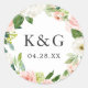 Wedding Initials Blush Pink Floral Wreath Classic Round Sticker