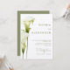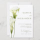 This wedding invitation features a sophisticated, minimalist style. Delicate calla lilies in soft green hues are depicted against a light background, creating an atmosphere of sophistication and tranquility. The design is modern, airy, and perfect for a stylish, romantic wedding.
