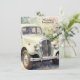 A wedding invitation featuring an elegant wedding car within a graceful floral setting