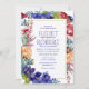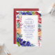 Watercolor floral arrangement of deep blue/purple flowers complimented with red flowers with a gold rectangular frame. Complimentary deep blue/purple watercolor backside. All type is customizable.