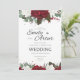 Wedding invite, invite, save the date card with floral vector bouquet frame design: garden red, burgundy Rose flower, white peony, seeded Eucalyptus branches, amaranthus