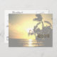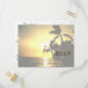 Pretty beach wedding RSVP guest reply cards for a couple to include with invitations. A romantic tropical sunset with palm trees along the coastline.