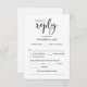 This is the beautiful Modern Romantic RSVP (Respond) Enclosure Card, in Black font, where you can edit and format it as per your design requirement, with meal options, reserved seats, number attending and song request option.