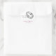 The sticker is made on wonderful paper and had no problem sticking to the bag that I purchased to put it on. I wanted to find a design that would be cute for the bride and groom and this one fit the bill as it has cute "bees" buzzing around and the wedding was taking place in a town called "Bee Cave". The packaging was great and protected the stickers. The website is easy to navigate and there are so many color choices. I had no problem finding a color that the bride was using on everything else selected. The design was adorable and there were many to choose from. You can make the figure as larger or smaller and you can place the photo and writting whereever you want to in the sticker. The printing is fabulous..better than expected.