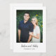 A beautifully designed wedding invitation featuring a large photo on the front with an elegant white inset border. The inside features a traditional typeface accented and framed with green leaf borders.