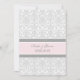 Plain white envelopes are included with paper invitations and will come to fit the invitation size you select. If you don’t need the envelopes, you may choose to not receive them by selecting the dropdown below "Envelopes" and choosing "None." If you’d like to have a design on your envelopes, you can browse all of these available envelopes to find the design that complements your Wedding Invitations Pink Gray White Damask.