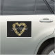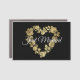 This wedding just married car magnet is shown with gold colored roses forming a heart wreath. White script-text.