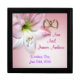 Wedding keepsake box with watercolor amaryllis flowers on canvas look background with names and date of the wedding couple. Perfect gift for bride and groom to save mementos from their special day. Customize with names and date. You can also change the font and the font color. This beautiful box can be used for any special occasion or birthday.