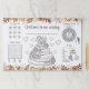 Keep your youngest guests entertained with this custom placemat design, featuring a whimsical wedding cake illustration as the centerpiece. A beautiful border of warm, earthy-toned botanicals elegantly frames a variety of fun activities and playful elements. This delightful artwork blends a rustic, charming aesthetic with a kid-friendly style, creating an enjoyable detail for your special celebration.