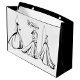 Wedding-themed gift bag featuring elegant illustrations of brides. The bag showcases a black and white design with the word "Wedding elegantly displayed at the top.