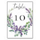 Wedding lavender florals eucalyptus greenery table number