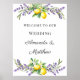 A chic white background. Decorated with lavender florals, flowers and lemons. Personalize and add your names.