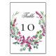 A stylish white backgrond decorated with pink lavender florals and eucalyptus greenery. Personalize and your table numbers one by one. Black letters.
