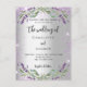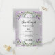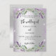 A modern, stylish wedding invitation. A faux silver looking background with violet faux glitter, sparkles, lavender florals, flowers and eucalyptus greenery. Personalize and add your names and the details.