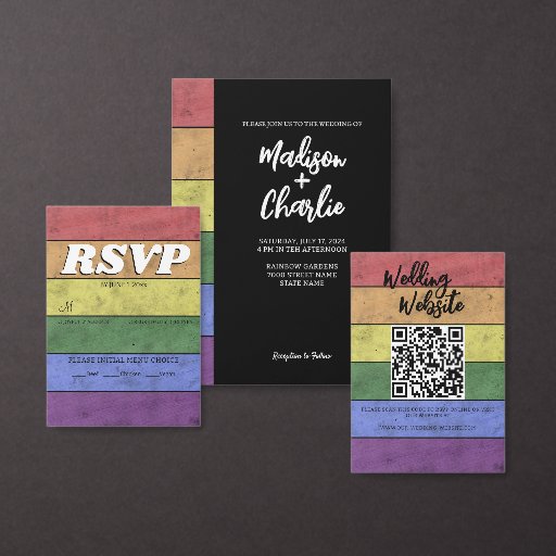 Personalize and customize gay homosexuals equality vintage Wedding favors The perfect match. LGBT flag vintage digital art rainbow colors red orange yellow green blue purple with black lines stripes wood distressed look.