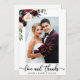 Wedding Love and Thanks Watercolor Burgundy Blue Floral Elegant Script Photo Thank You Card