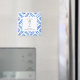 Wedding Magnet Save the Date. Mediterranean Blue tile background.