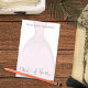 Wedding party gift idea with bridesmaid note, with a cute, pink dress, add your name to this stylish, trendy design, with "maid of honor", calligraphy script typography in a classic style.