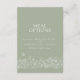Gray green sage on white botanical wedding meal options enclosure card. Simple hand drawn blossom, vines and butterflies design. Customize with your own wedding or event meal options. Other colors and matching items are available. © Original hand drawing stylized line art and design by Sarah Trett for www.mylittleedenweddings.com on Zazzle.