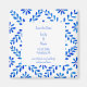 Wedding Magnet Save the Date. Mediterranean Blue tile background. Blue text. Website