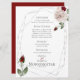 Watercolor Wedding Menu | Dusty blush roses accented with cabernet red rose buds surround a geometric terrarium style silver frame. Reverse is a complimentary cabernet wine red. Customize text, font style, color and size. Original artwork created for the BarefootBride™ by © WhimsicalArtwork™ - This is part of a complete Wedding Stationery Suite with matching wedding, baby shower and other event stationery.