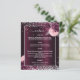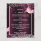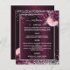 An elegant, glamorous wedding menu. A deep burgundy gradient background, decorated with faux silver glitter, sparkles and pink and burgudny flowers. White text. Personalize and add the menu.