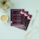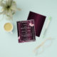 An elegant, glamorous wedding menu. A deep burgundy gradient background, decorated with faux silver glitter, sparkles and pink and burgudny flowers. White text. Personalize and add the menu.