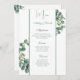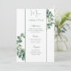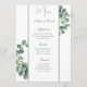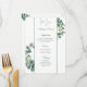 This wedding menu card is shown on basic paper in a lovely greenery vine print. Script and standard text in a green color.