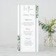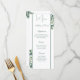 This wedding menu card is shown on basic paper in a lovely greenery vine print. Script and standard text in a green color.
