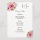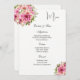 This Menu Card template is shown on basic paper in white with a lovely floral print. Script and standard text in black.