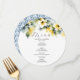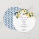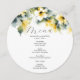 This wedding menu template features a beautiful watercolor hibiscus menu card design with a soft yellow floral top border and an ornate watercolor pattern on the reverse, creating a refined and artistic presentation. Perfect as a DIY tropical wedding menu, this round wedding menu template is a charming choice for tropical garden theme menus and couples seeking unique wedding menu ideas. Easily personalize your details using the template fields to create a personalized elegant wedding menu that complements your celebration.