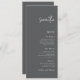 Wedding Menu Card with Guest Name Grey. Available digitally and printed. A great alternative to place cards at your wedding or rehearsal dinner, with your guest's name on their menu. This modern design is easy to personalise with your guest name and menu details. You can also change text and background color to match your own wedding color theme if you wish via the Customize Further option.