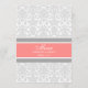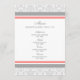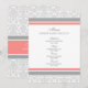 Wedding dinner menu in elegant peach orange pink, grey and white classic floral damask pattern, customizable with your details and available in matching wedding products.