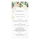 An elegant, modern and wedding menu. A white background decorated with eucalyptus greenery and golden leaves. Golden faux glitter spots. Personalize and add your names, date and the wedding menu. Black colored letters. The word Menu is written with a trendy hand lettered style script with swashes. Back: white background and golden faux glitter drops.