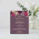 An elegant bohemian boho style wedding menu card. Lush watercolored roses, in pink and burgundy. Templates for your names, date and the wedding menu. Cassis background on front, cassis, deep purple on back. Golden colored letters.