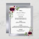 Wedding Menu florals burgundy silver elegant