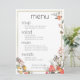 Elegant colorful watercolors flowers and gold frame wedding menu customizable template.