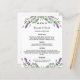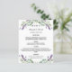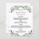 An elegant, glamorous wedding menu card. Personalize and add your names, date and the wedding menu. Decorated with lavender florals, flowers and eucalyptus greenery.