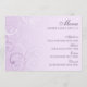 Wedding meal menu in elegant lavender swirls pattern, customizable with your details and available in matching wedding products.