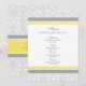 Wedding dinner menu in elegant bright canary yellow, grey and white classic floral damask pattern, customizable with your details and available in matching wedding products.