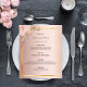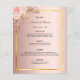 An elegant bohemian boho style wedding menu card. Personalize and add your names, date and the wedding menu. A faux gold frame and a chic rose gold faux metallic looking background. Decorated with blush pink florals and pampas grass.