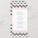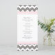 Elegant wedding dinner menu in elegant light pastel blush baby pink, grey and white chevron zigzags retro pattern, customizable with your dinner details, available in a wide range of matching wedding products.