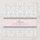 Wedding dinner menu in elegant light blush pink, grey and white classic floral damask pattern, customizable with your details and available in matching wedding products.