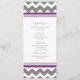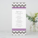 Wedding dinner menu in elegant dark eggplant purple, grey and white with fun retro chevron zigzags pattern, customizable with your details and available in matching wedding products.