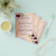 An elegant bohemian boho style wedding menu and evening progam. Feathers and lush watercolored roses in burgundy. Templates for your names, date, wedding menu and program. A faux gold frame and a chic rose gold gradient background.