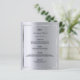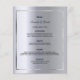 An elegant, glamorous wedding or wedding anniversary menu card. Templates for your names, date and the wedding menu. A faux silver frame and a chic, glamorous faux silver metallic looking background. Black colored letters.