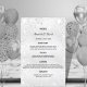 An elegant, glamorous wedding menu card. Personalize and add your names, date and the wedding menu. Faux silver metallic looking background, decorated with faux glitter dust.