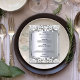 An elegant and glamorous wedding menu. Black and white watercolored roses as decor. Templates for your names, date and the wedding menu. A faux silver frame and a faux silver metallic looking background color. Black colored letters.